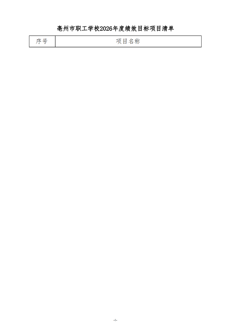 亳州市职工学校2026年度绩效目标项目清单