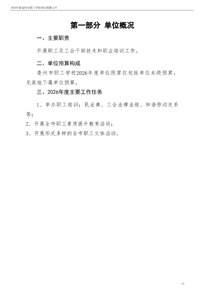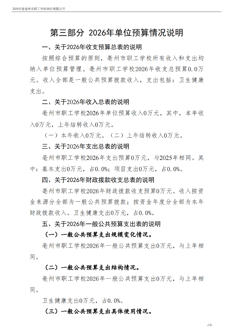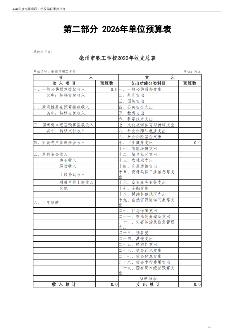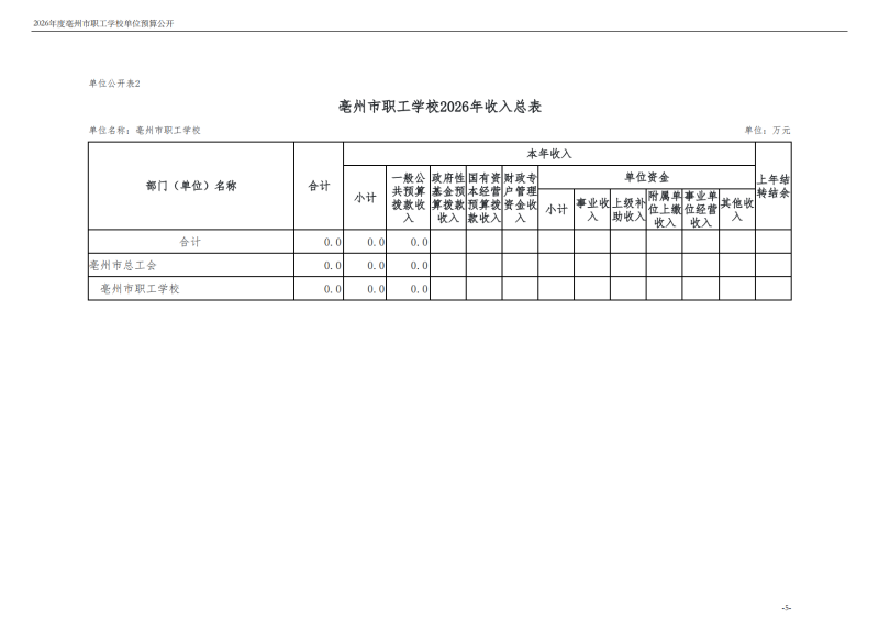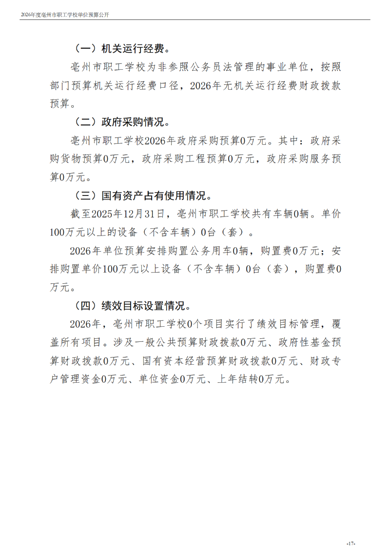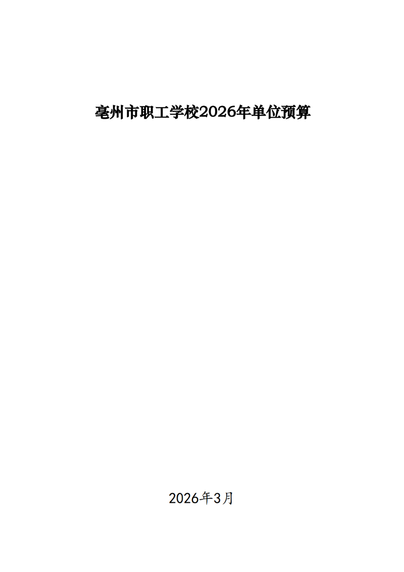 2026年度亳州市职工学校单位预算公开