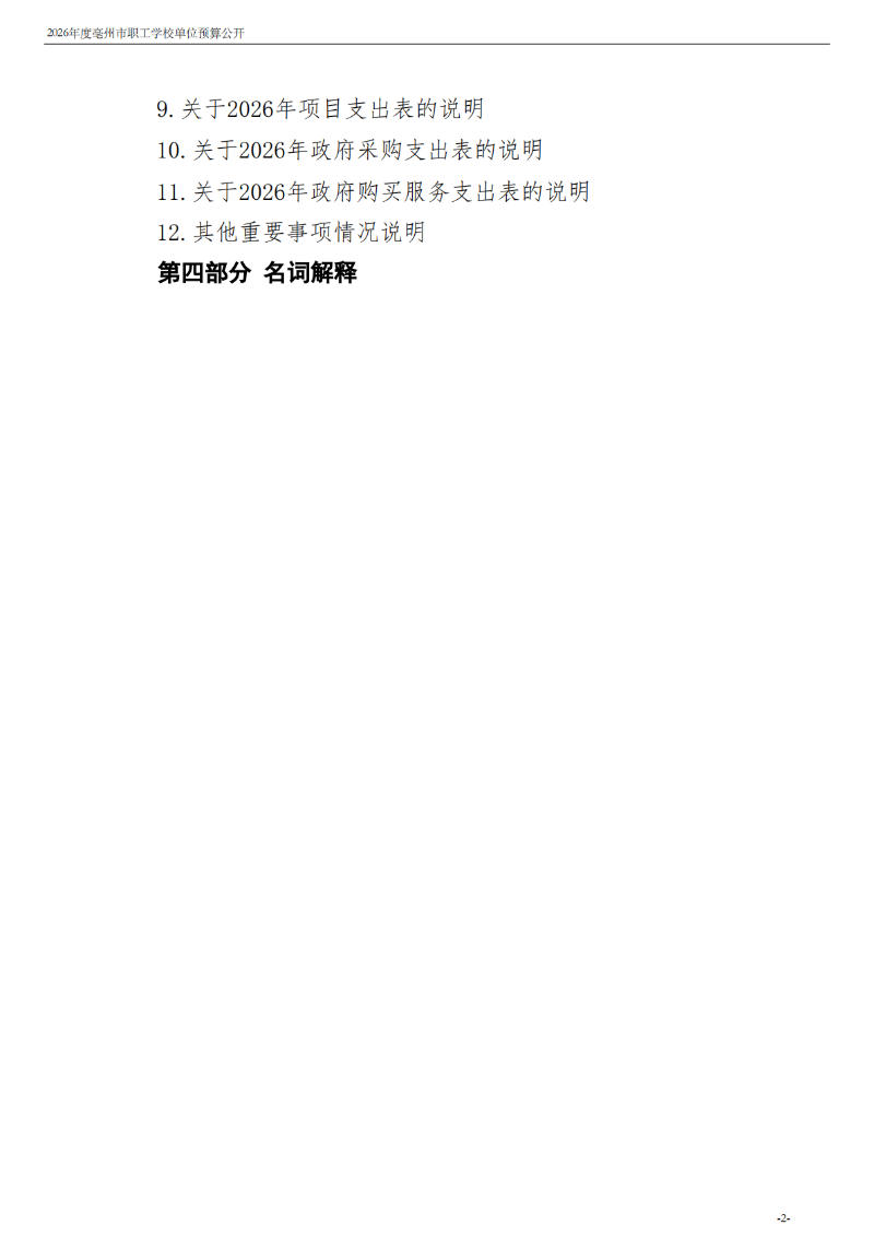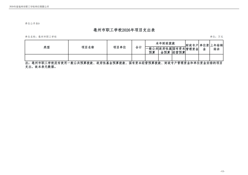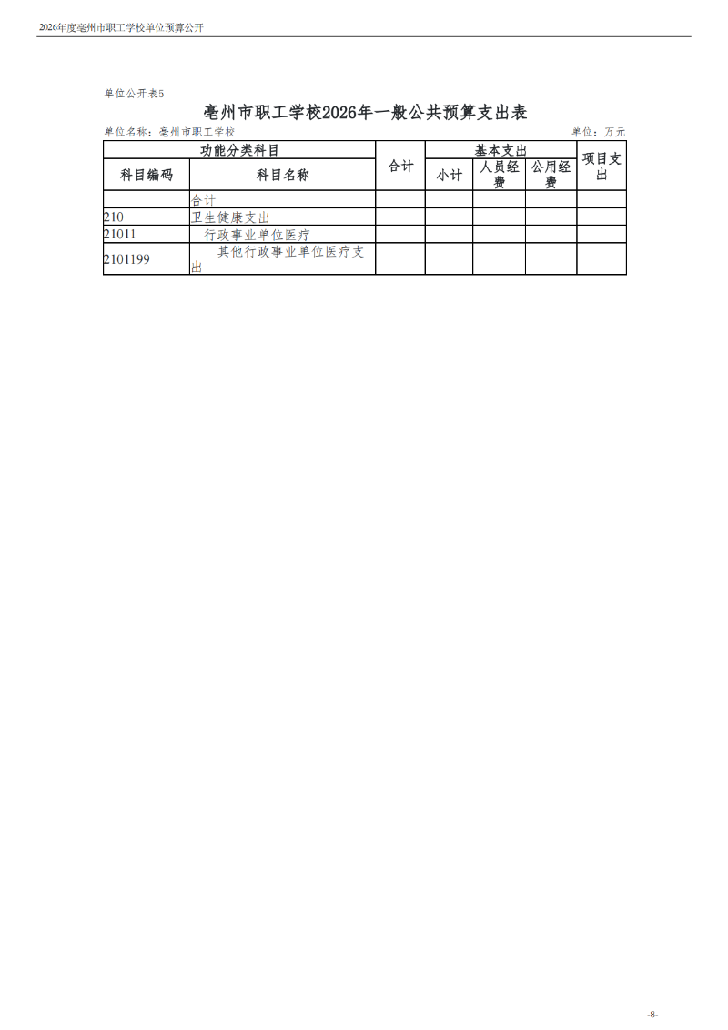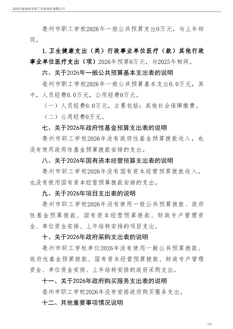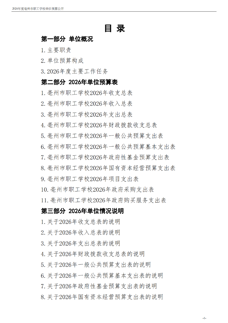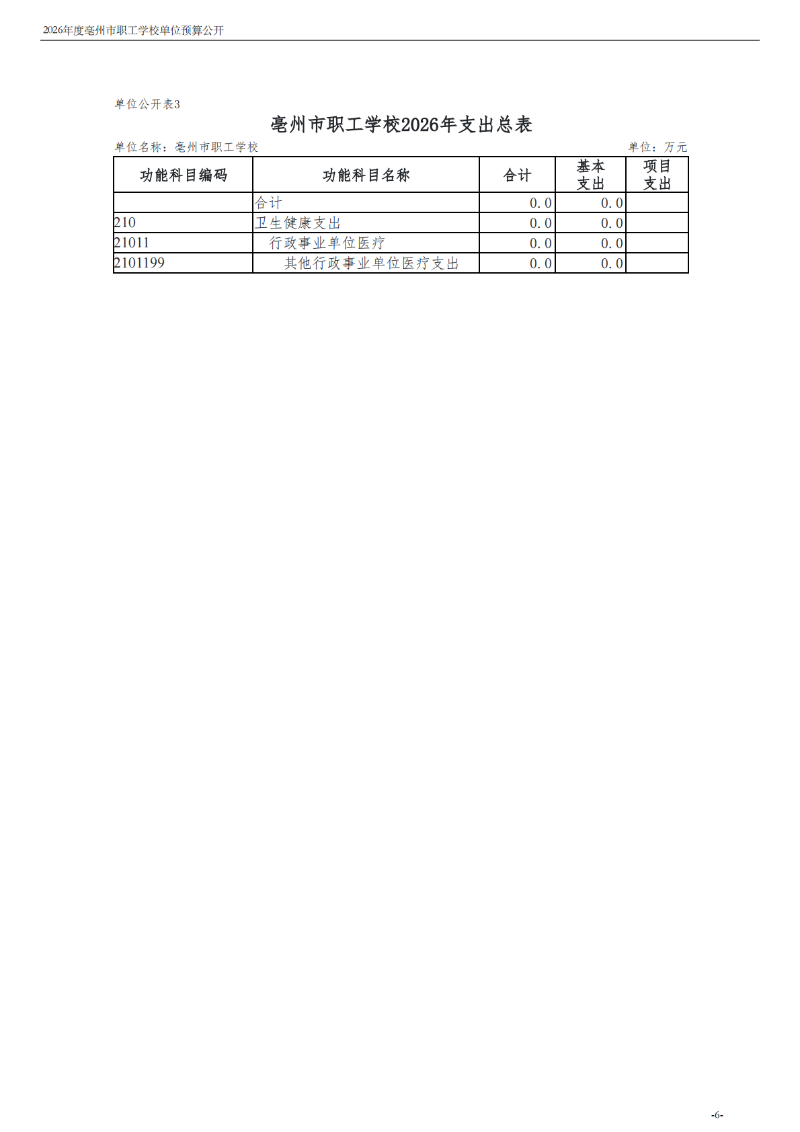 2026年度亳州市职工学校单位预算公开
