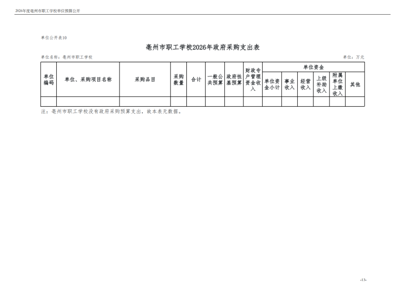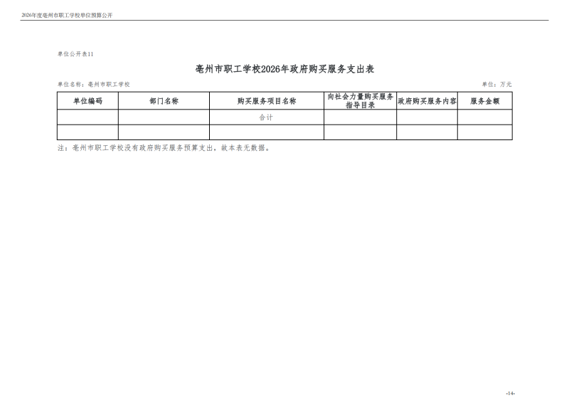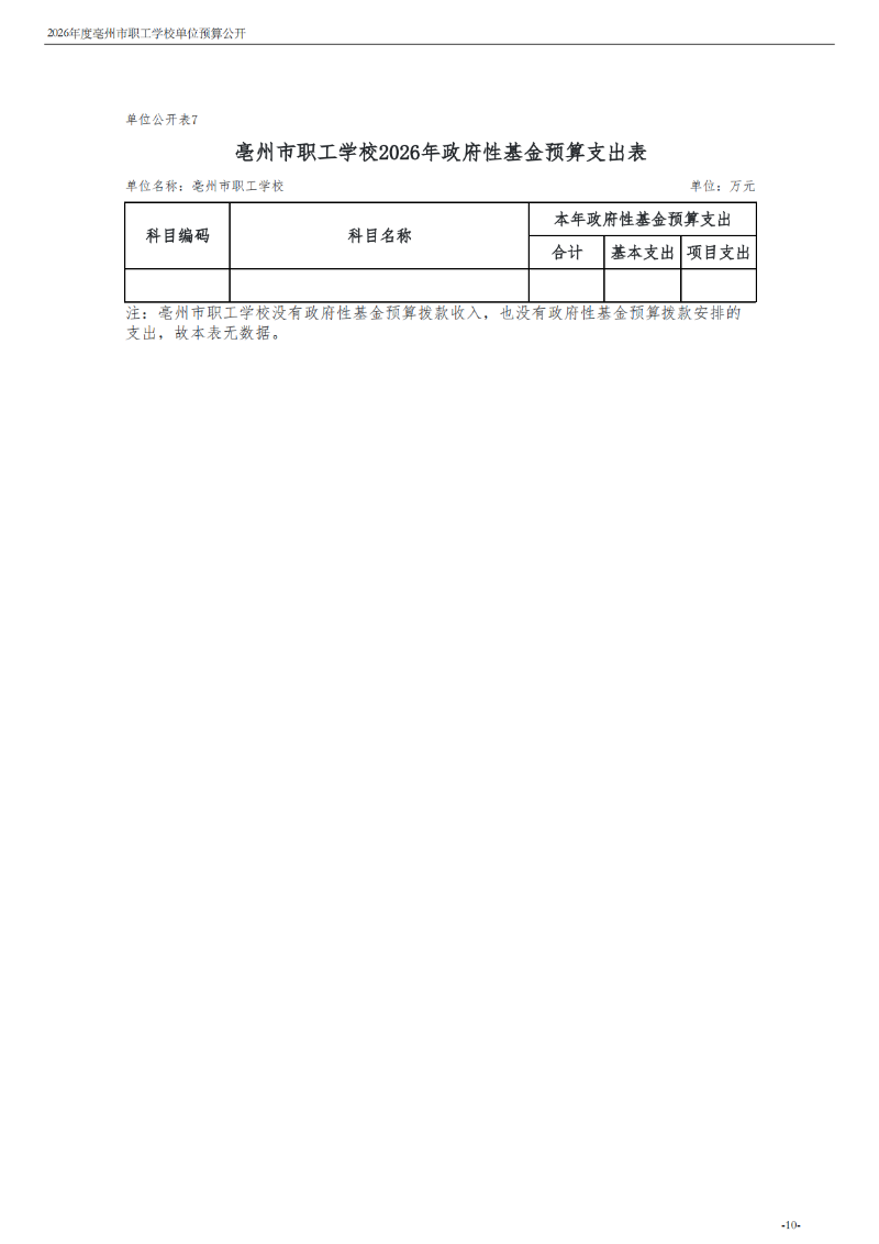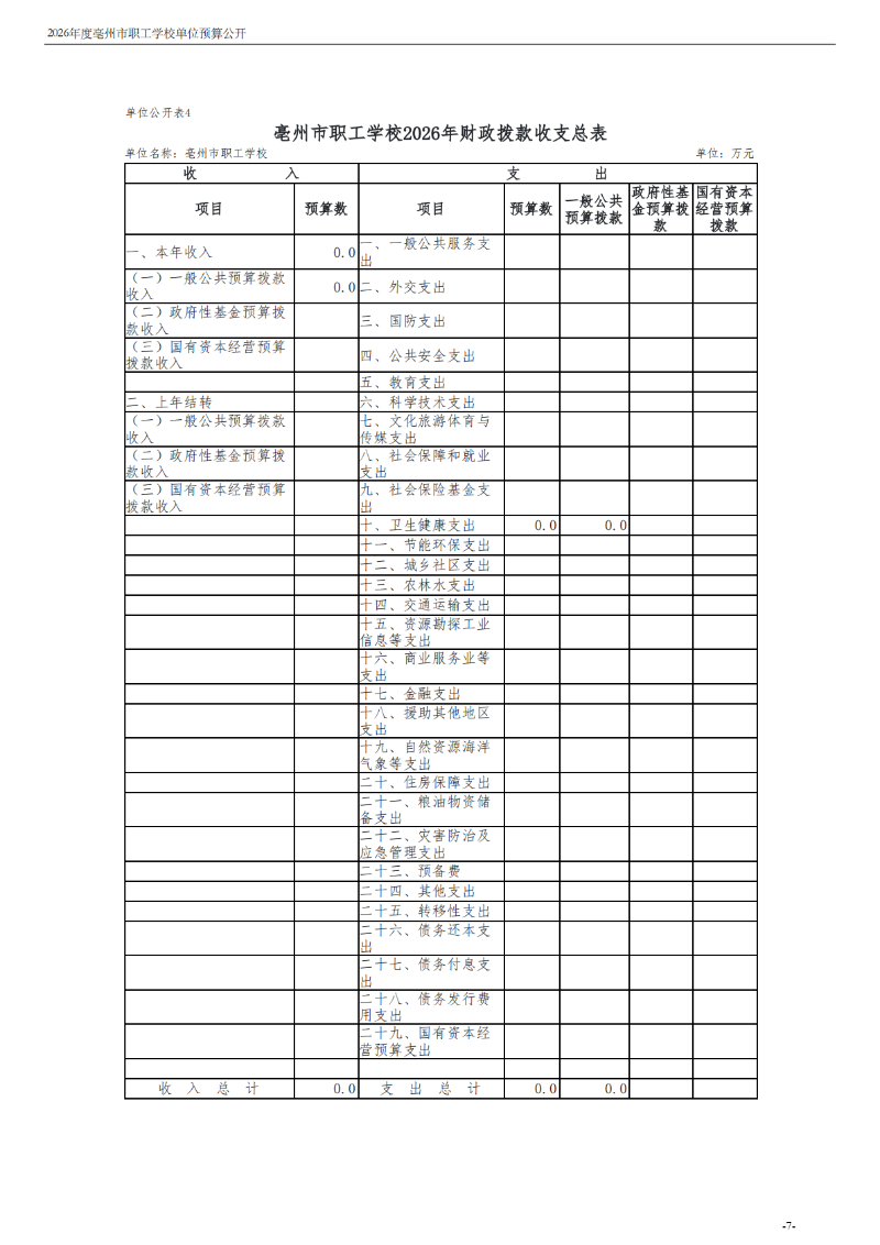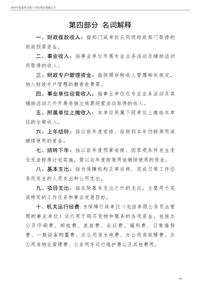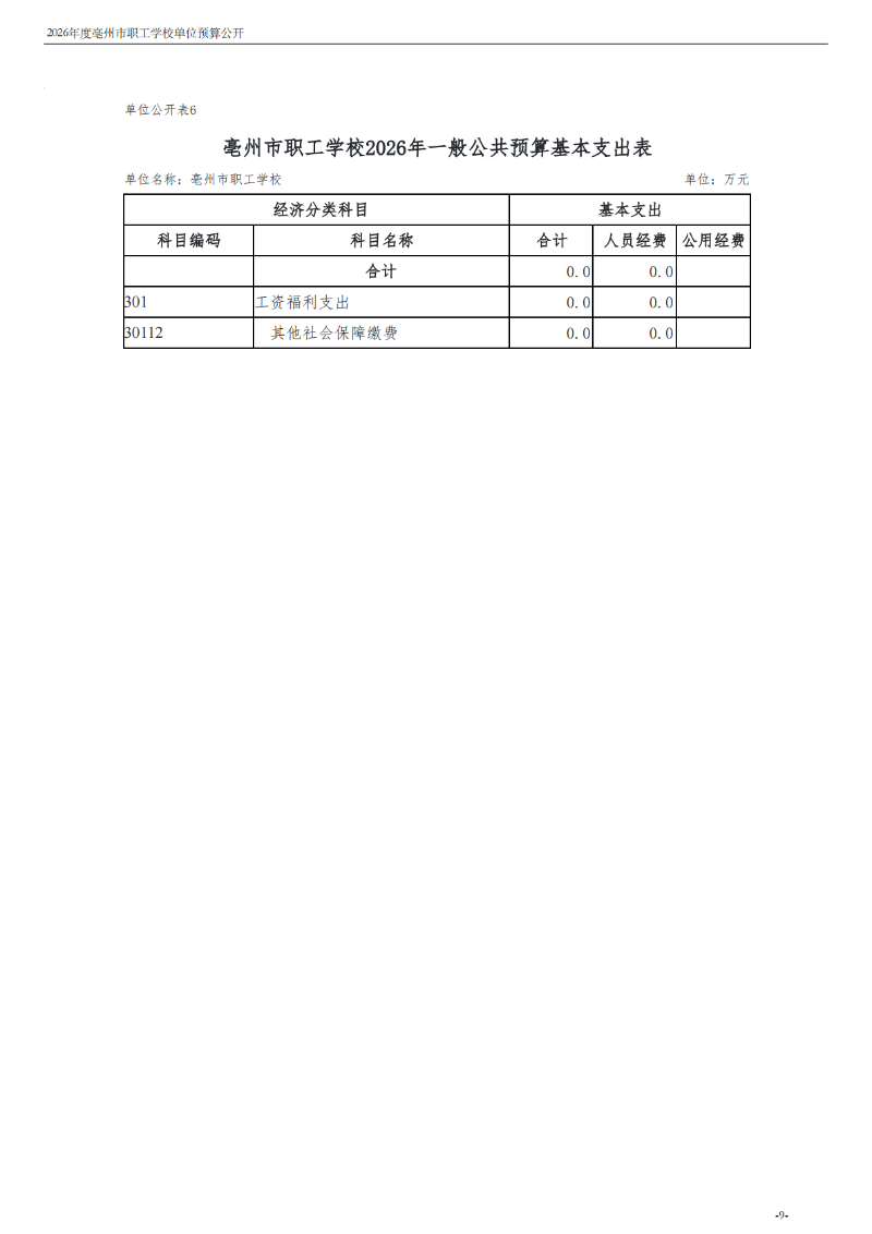 2026年度亳州市职工学校单位预算公开