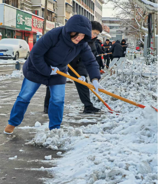 “雪情就是命令,畅通就是责任。”凛冽寒风中,工会干部职工化身“清雪卫士”,手持铁铲俯身奋战,不顾双手冻红、衣衫浸湿,默契配合、分工协作:有的奋力铲除路面厚实积雪,有的仔细清理边角残雪与薄冰,有的重点清扫坡道、路口等易滑部位,对积雪顽固区域采取“多人协作、逐段清理”的方式全力攻坚。从深夜的默默奋战到清晨的持续攻坚,大家用汗水融化冰雪,用坚守守护平安,累计清理菜市场周边道路、学校门前及周边路段多条,为群众开辟出一条条安全畅通的“暖心路”。