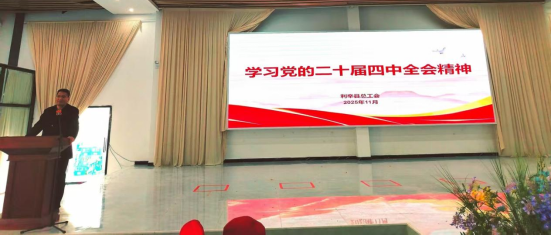 2025年11月12日,在利辛县胡集镇举办的2025年利辛县农村移风易俗现场观摩会暨主题宣传月活动期间,县总工会代洪富代表工会组织参会,并以此次活动为契机,面向现场基层职工代表、干部群众开展党的二十届四中全会精神专题宣讲,将理论学习与文明乡风建设深度融合,推动全会精神在农村一线落地生根。